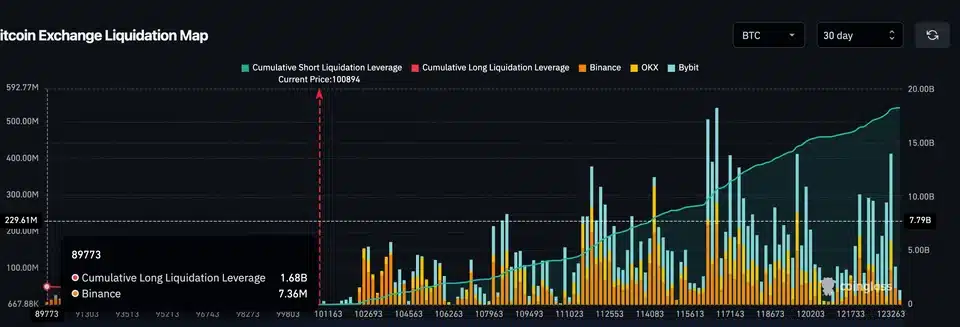 “Bear markets don’t happen when everyone is short,” the post said. “The flush always happens when everyone is long. Until 89K we only have $1.68B under us, compared to $18.3B in liquidations above. That’s a 1:20 ratio.”