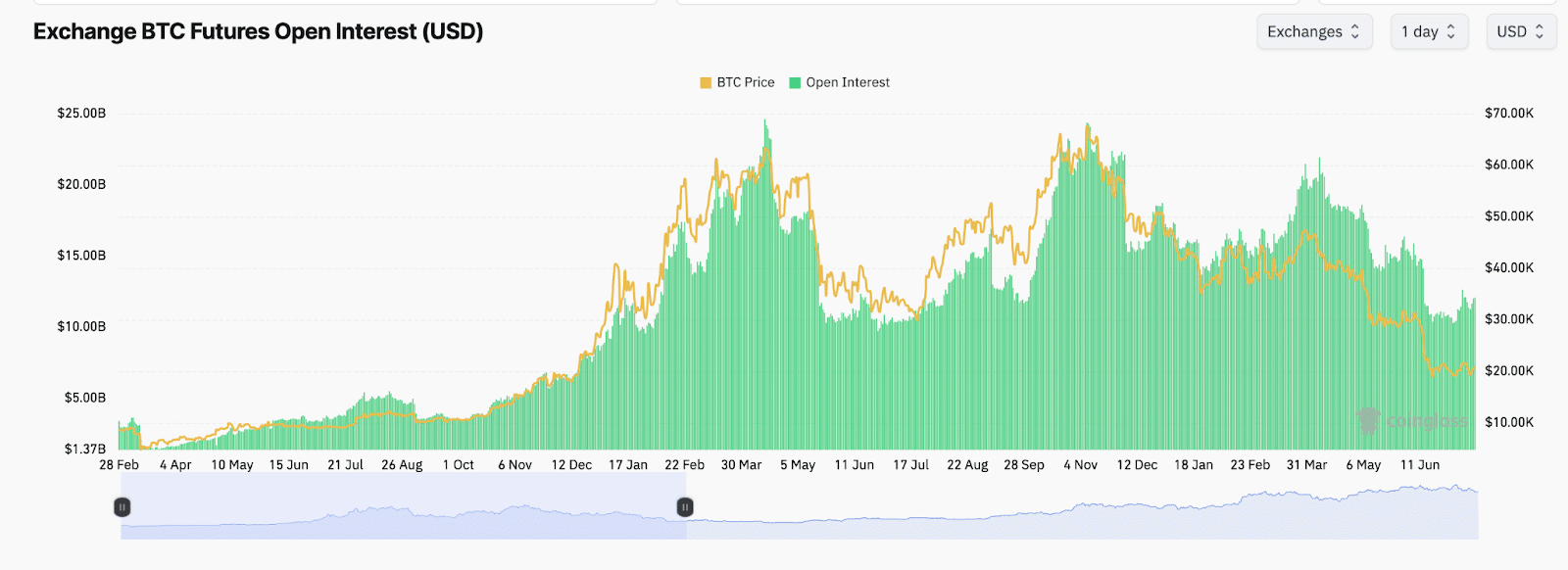 Small pullbacks in BTC were matched by similar dips in open interest, but both have stayed on an upward path.