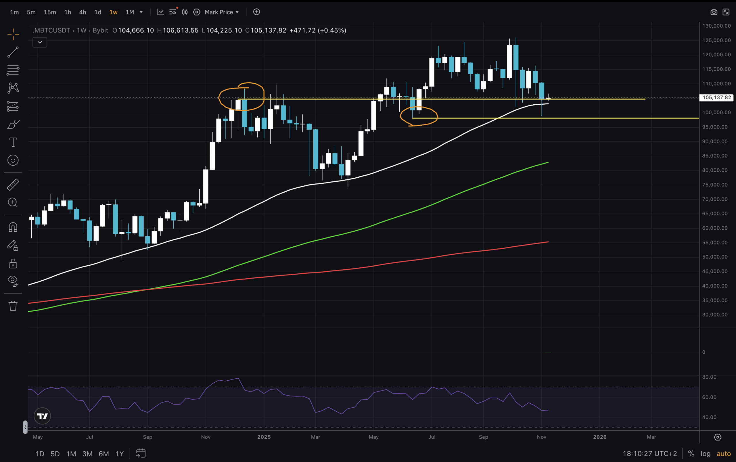 Then either a rejection and retest of $105,000 as support, or a push through the box and testing $110,000 for support. Now that RSI is at a low level, there is sufficient room for a price push.