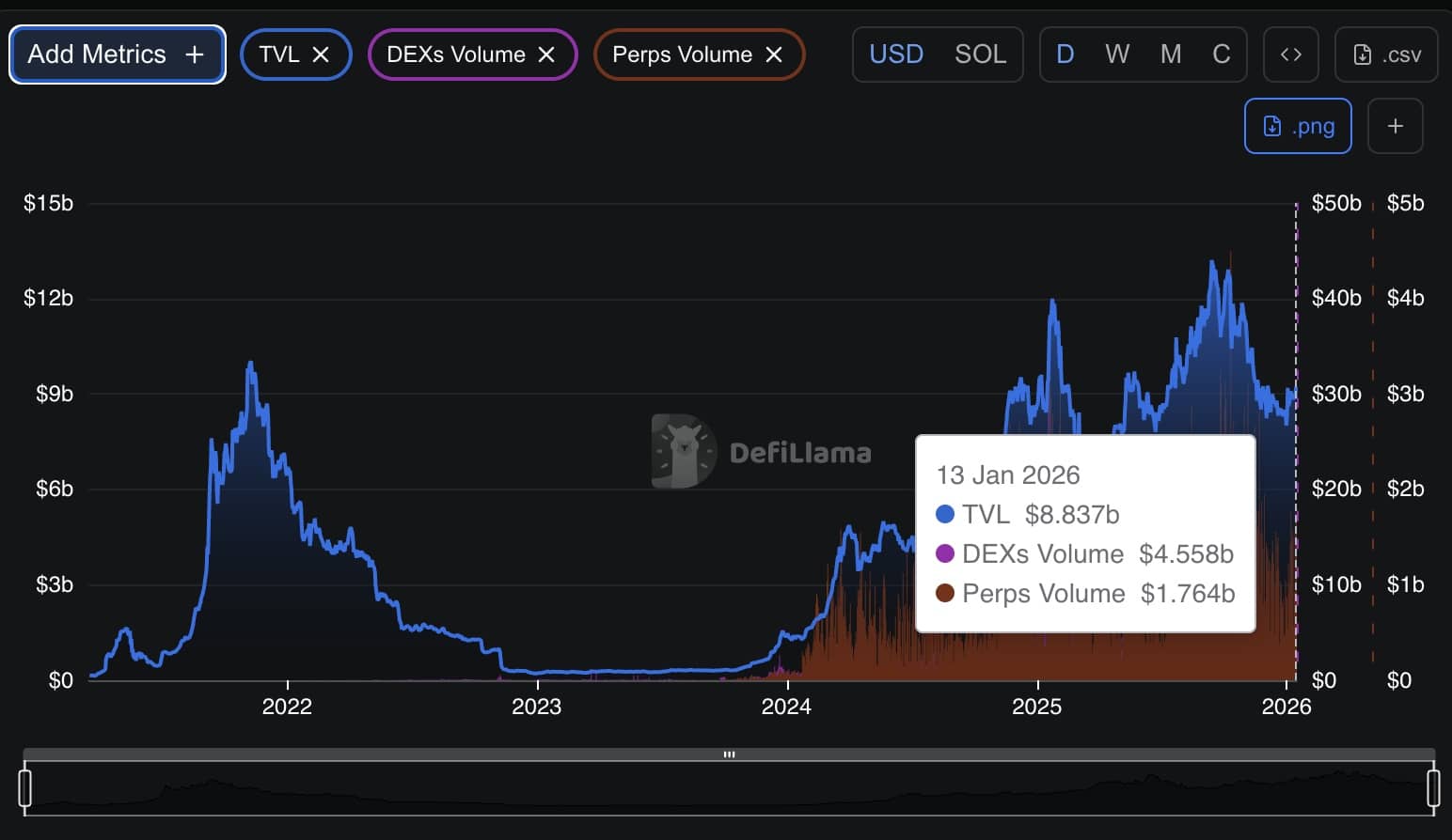 DefiLlama showed around $4.69Bn in DEX trading volume on Solana in the past day.